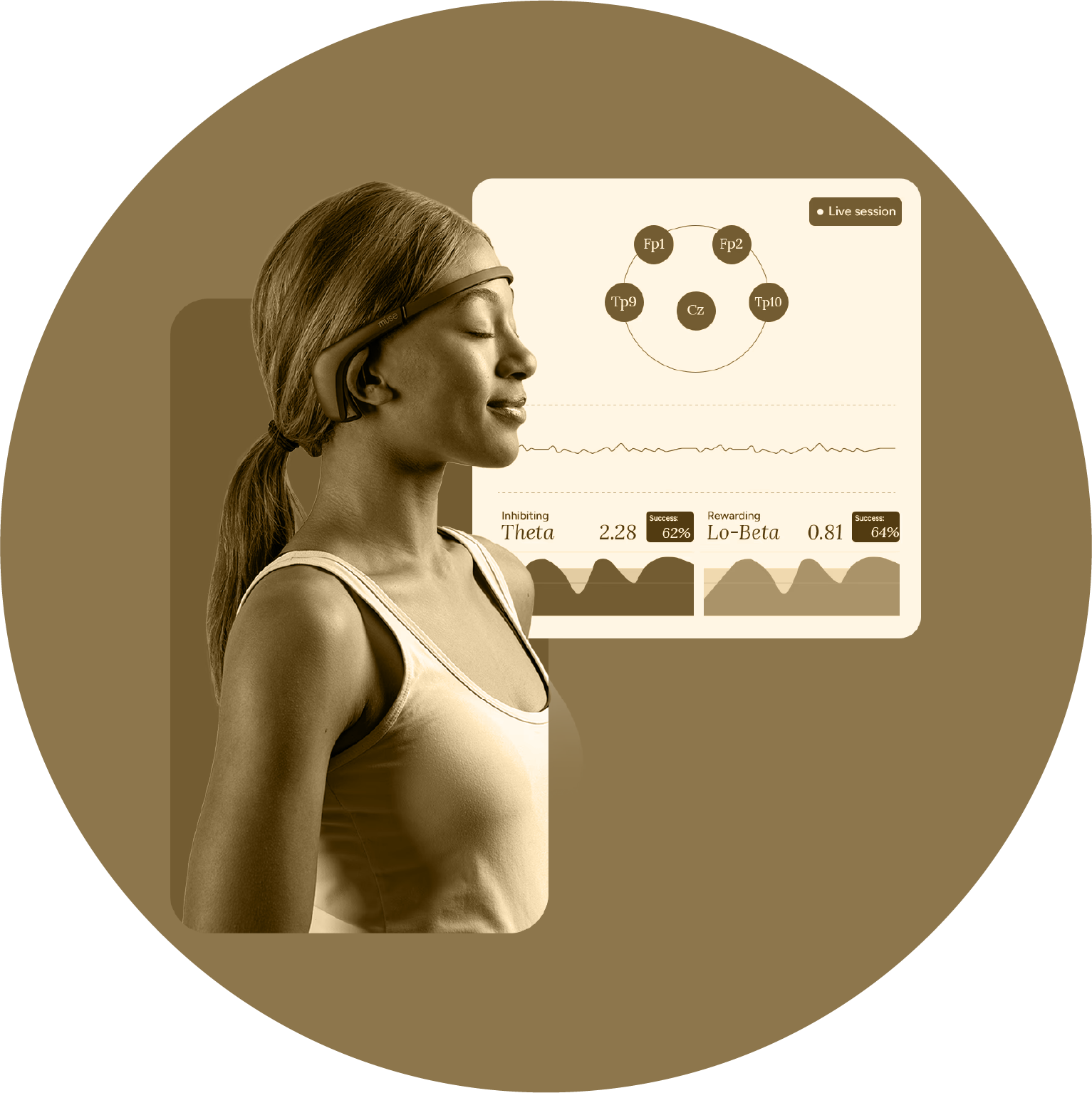 Neurofeedback uses EEG technology to measure your brainwave activity and provide real-time feedback as you train. This insight can help you have more control over reaching your goals.